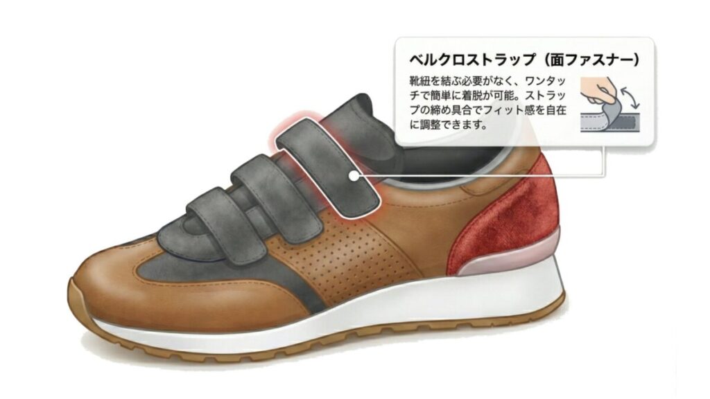 足と靴を隙間なく固定することで、足底からの情報が脳に伝わりやすくなります。片手で操作できる強力なベルクロ(マジックテープ)タイプや、最新のダイヤル式(BOAシステム)が推奨されます。