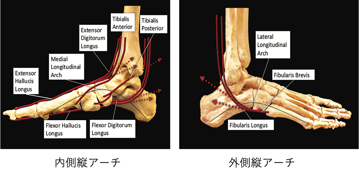 前足部: 側方アーチが歩行中に変形し、最後に押し出しの役割を果たす。